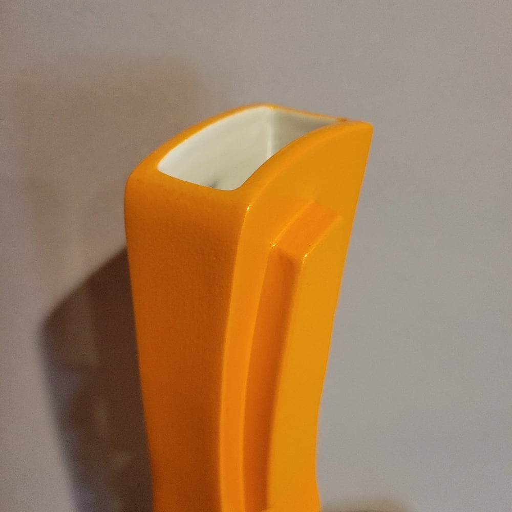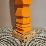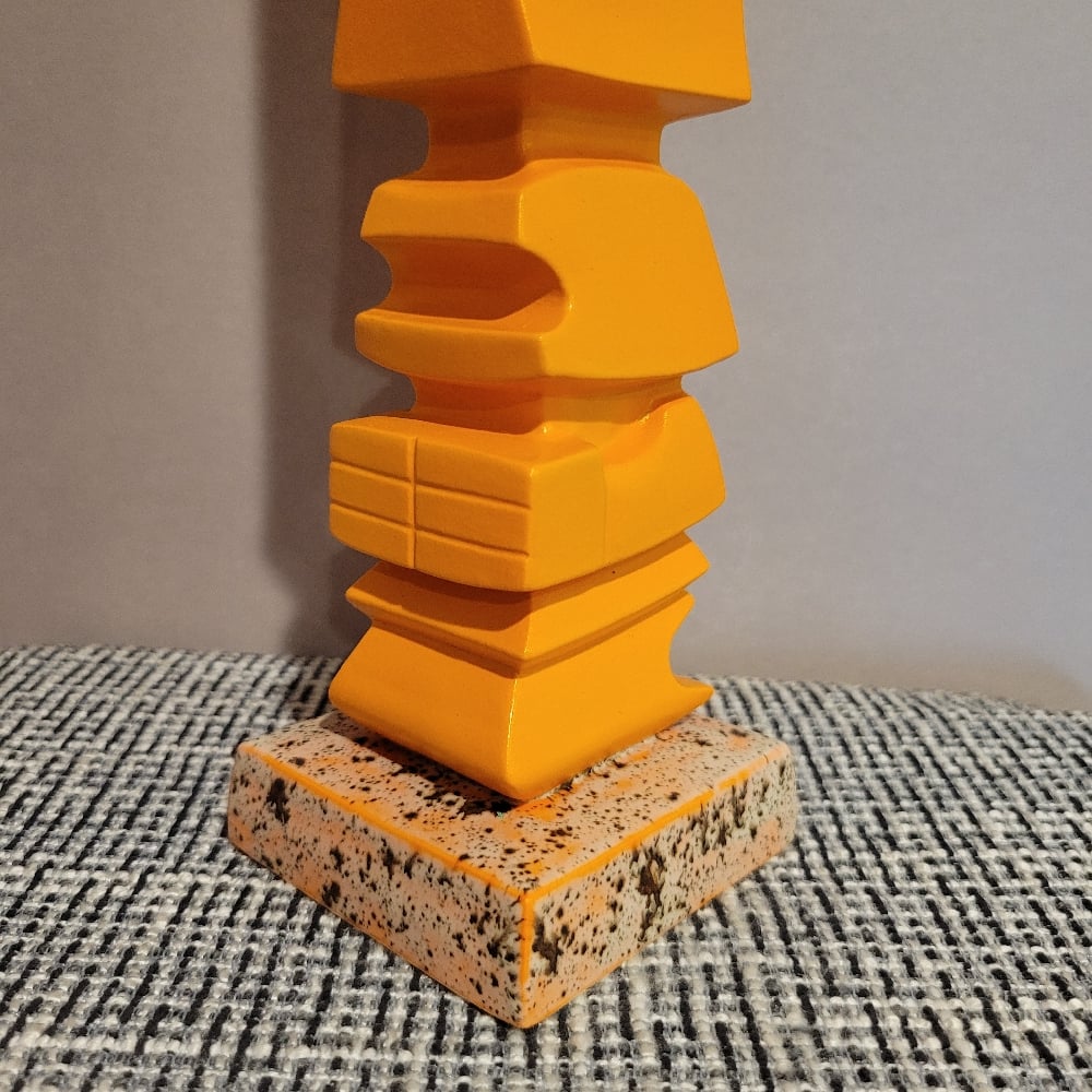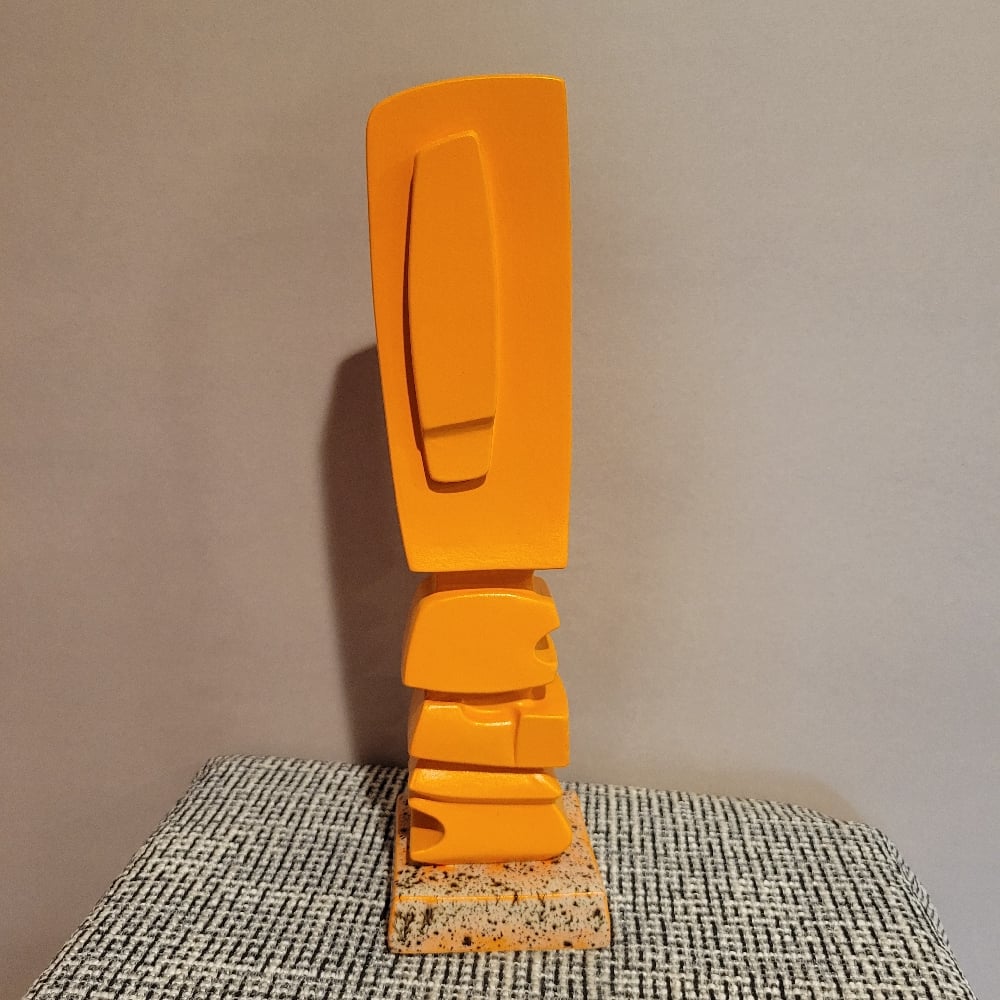 #13 matte orange exterior with gloss white interior. This is my collaboration with Joe Emery ( Avenue e Modern ) He has allowed me to adapt one of his beautiful wood carvings into this mug. Tiki combined with Mid Century Modern style in an aesthetically pleasing manner. This piece is definitely form over function. A great addition to your collection or a focal point for your decor.