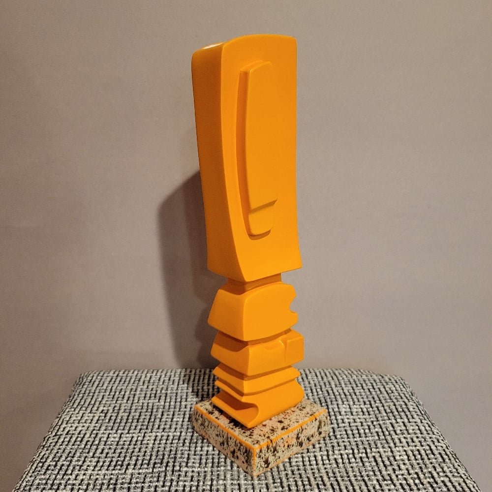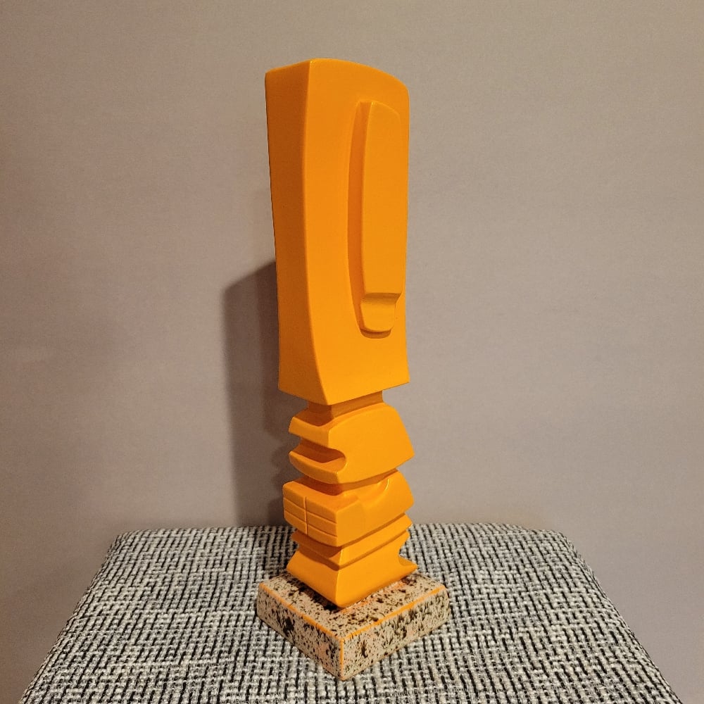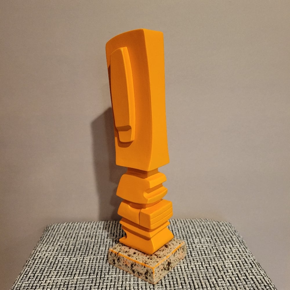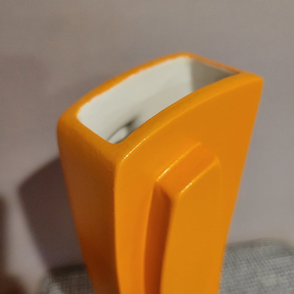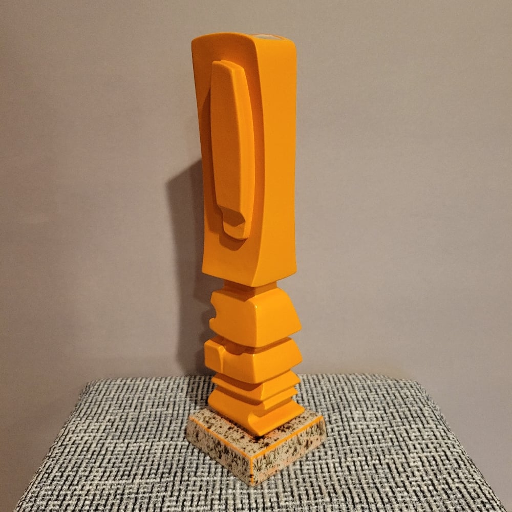 #16 matte orange exterior with white gloss interior. This is my collaboration with Joe Emery ( Avenue e Modern ) He has allowed me to adapt one of his beautiful wood carvings into this mug. Tiki combined with Mid Century Modern style in an aesthetically pleasing manner. This piece is definitely form over function. A great addition to your collection or a focal point for your decor.