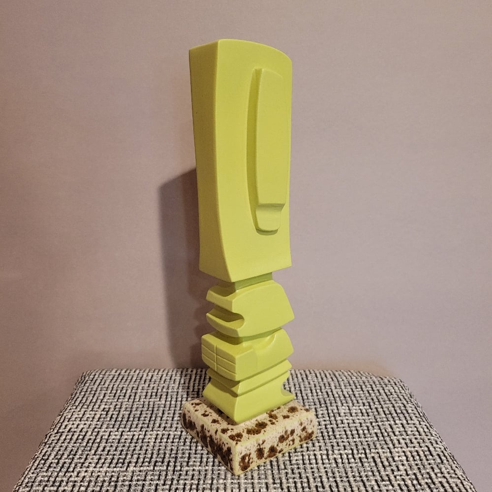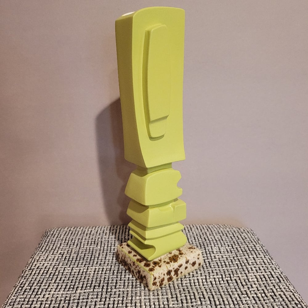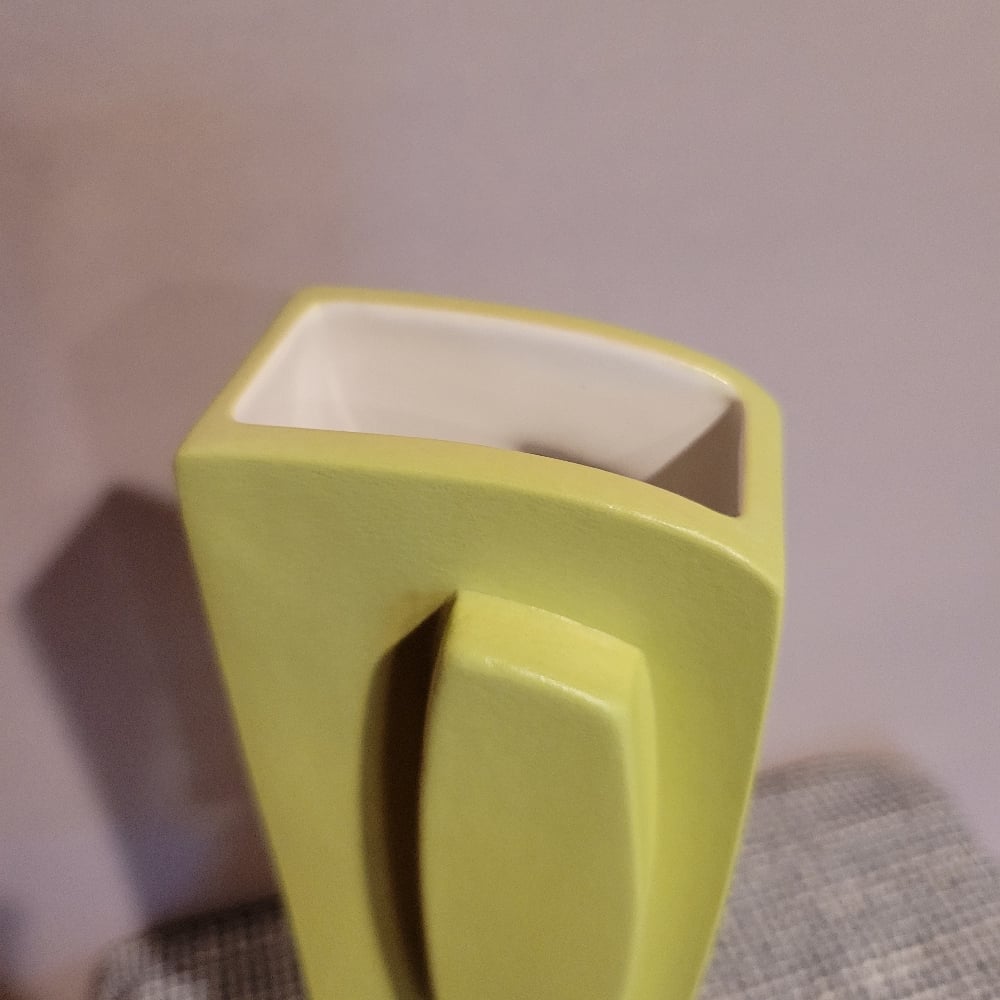 #18 Matte chartreuse exterior with gloss white interior. This is my collaboration with Joe Emery ( Avenue e Modern ) He has allowed me to adapt one of his beautiful wood carvings into this mug. Tiki combined with Mid Century Modern style in an aesthetically pleasing manner. This piece is definitely form over function. A great addition to your collection or a focal point for your decor.