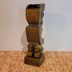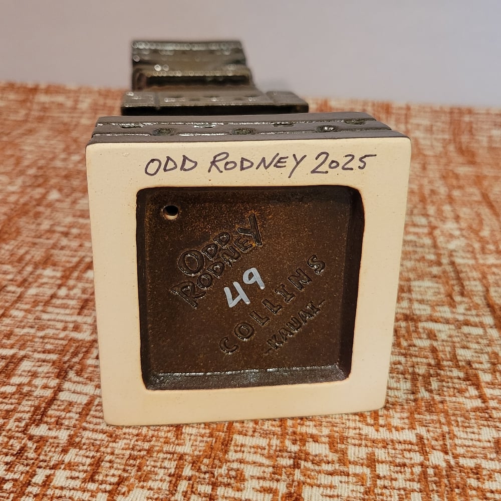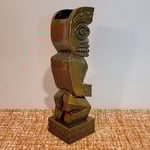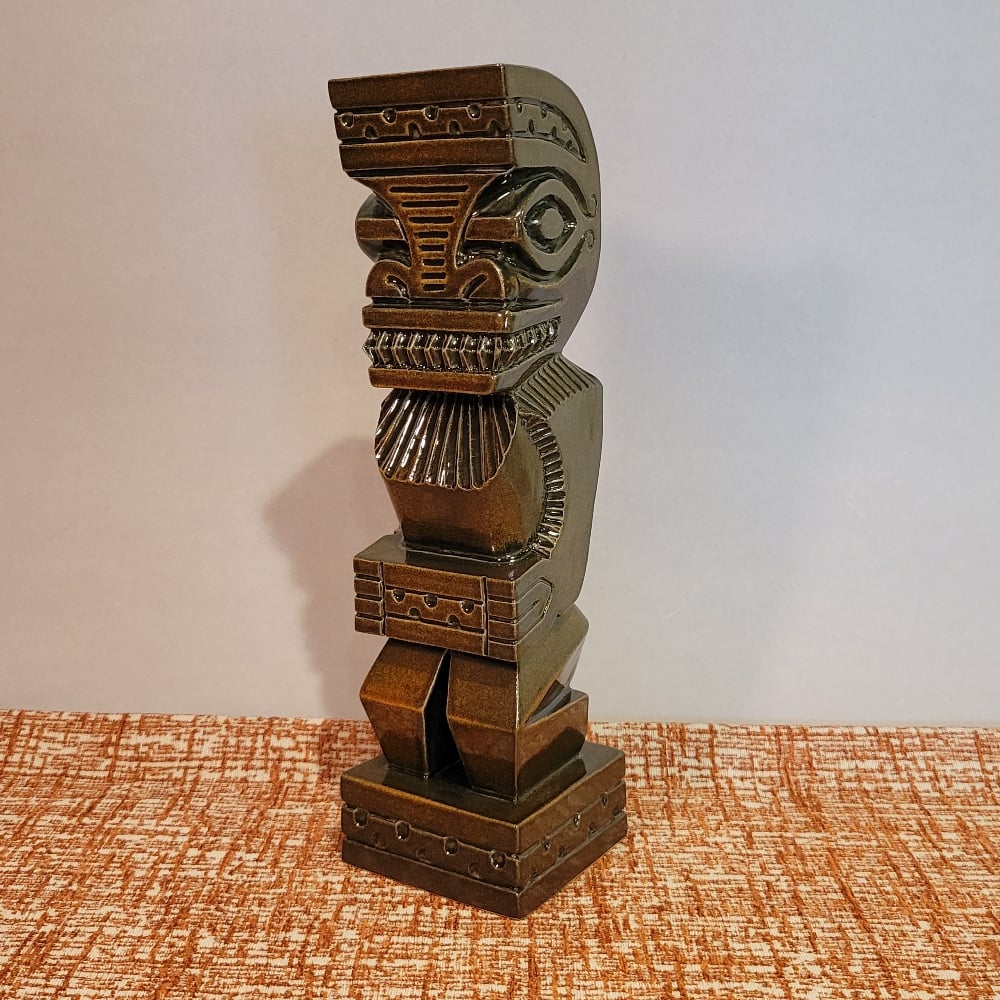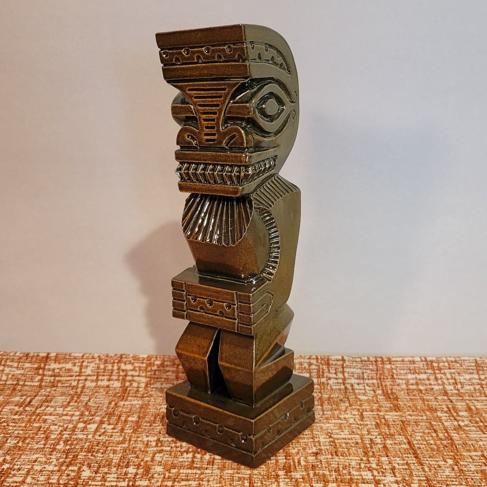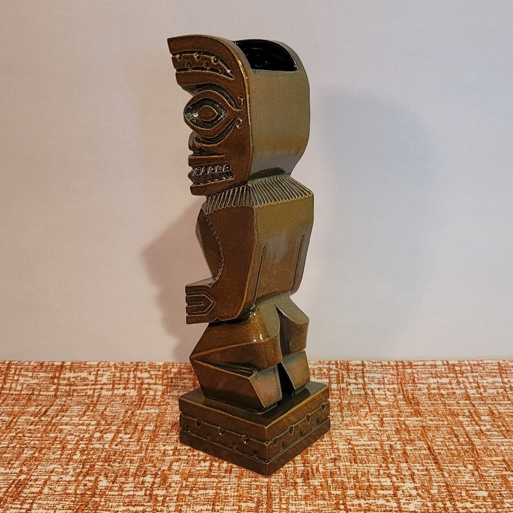 "The Brutalist Tiki #49" is a stoneware mug based on Bill Collins ( Island of Kauai ) original carving (see photos). I reached out to him and asked permission to translate his carving into a ceramic Tiki mug...he graciously allowed me to do so. This collaboration has been challenging and rewarding. The original sculpt was based from photos that were sent to me by Bill and is 100% hand made by me. Each mug is made of stoneware and stands at 11.25 inches tall. The volume is 16oz of liquid. This version is a gloss dark "brownish /black" with gloss black inside. Photos are of the actual mug. Mugs will be shipped with a box inside a box with new packing materials and insurance to make sure the arrive safely. Please feel free to ask any questions you might have. Thank you.